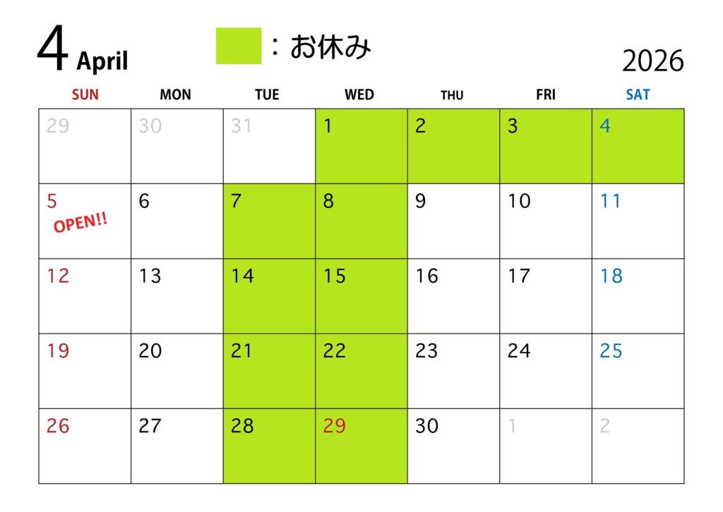 4月の営業日